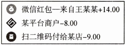 3. 手机支付给生活带来便捷,如图是王老师某日微信账单的收支明细(正数表示收入,负数表示支出,单位:元),王老师当天微信收支的最终结果是(