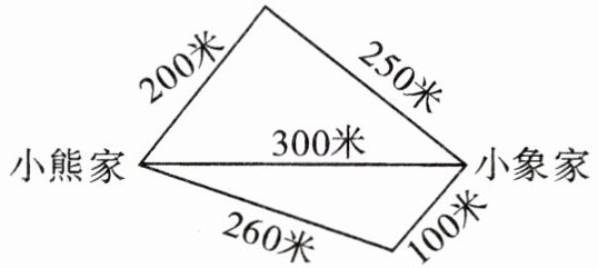 11. 小熊到小象家做客,走哪条路最近? 如果小熊每分钟可以走 15 米,至少多长时间可到达?