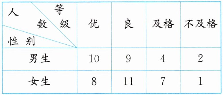 7. 四(2)班男、女生期末综合等级评定情况如下表。