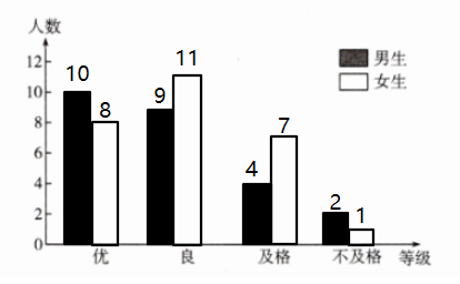 (2) 比较男生各等级人数$10\gt9\gt4\gt2$。