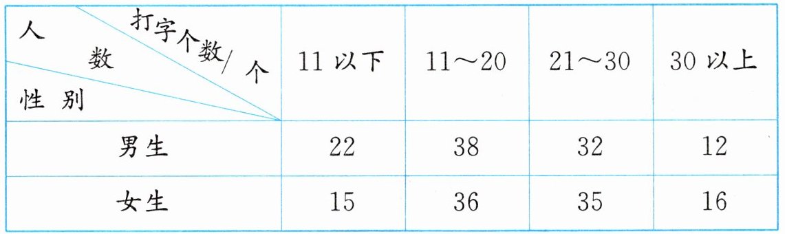 7. 下面是星星小学四年级学生每分钟打字的情况统计表。