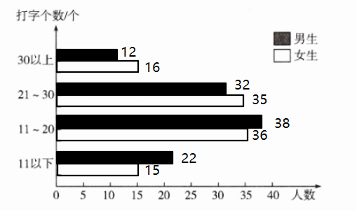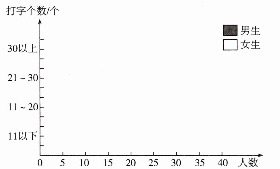 (1)复式条形统计图的制作:先确定横轴表示人数,纵轴表示打字个数范围。根据表格数据,对于每个打字个数范围,分别画出代表男生和女生人数的直条。例如,“11以下”打字个数范围,男生直条对应人数22,女生直条对应人数15,以此类推完成统计图绘制。