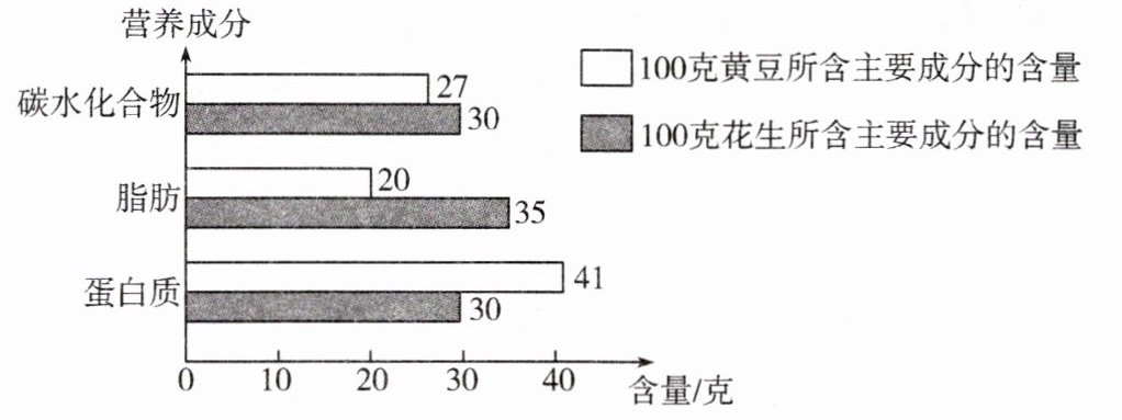 (10) 下图列出了 100 克黄豆和 100 克花生所含的几种主要营养成分。
