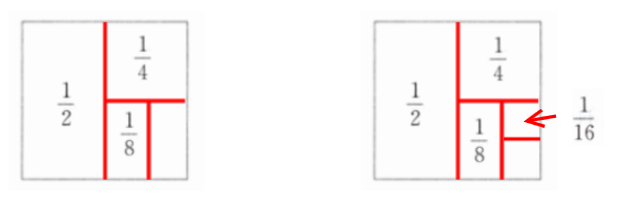 两道算式下面各有一个正方形,请你不要通分求和,而是根据分图说出每道算式的结果是多少。