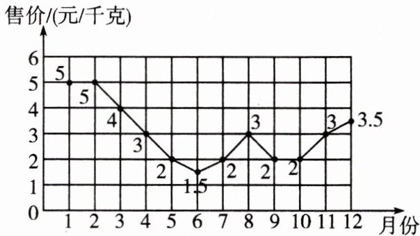 (1)1、2 月份售价最高,售价是 5 元/千克;6 月份售价最低,售价是 1.5 元/千克。