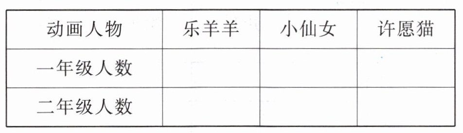四、下面是一、二年级同学喜欢动画人物的人数情况。