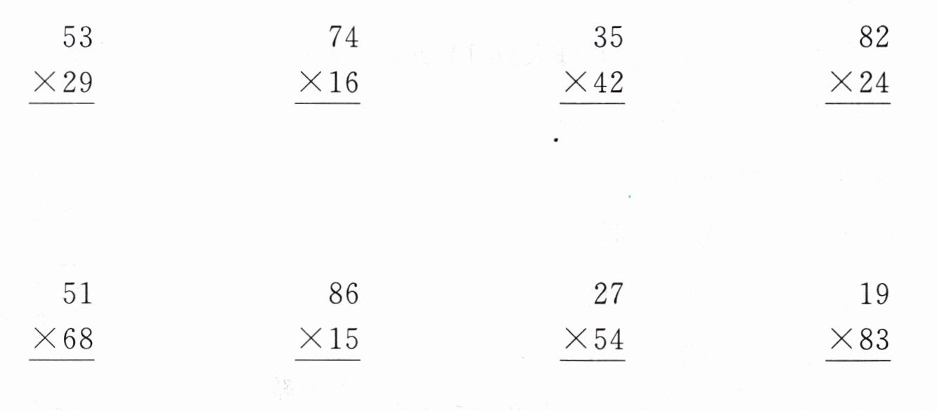【答案】:×,$\begin{array}{r}12\\\times24\\\hline48\\24 \\\hline288\end{array}$;×,$\begin{array}{r}32\\\times13\\\hline96\\32 \\\hline416\end{array}$