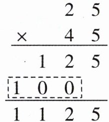 3. 卡通文具袋每个25元,全班45人每人买一个,一共需要付多少钱?下面竖式中框里的“100”表示(