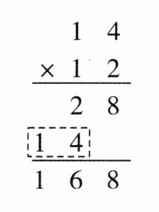 2. 一本书有300页,丁丁每天读14页,12天读了多少页?下面竖式中框里的数表示(