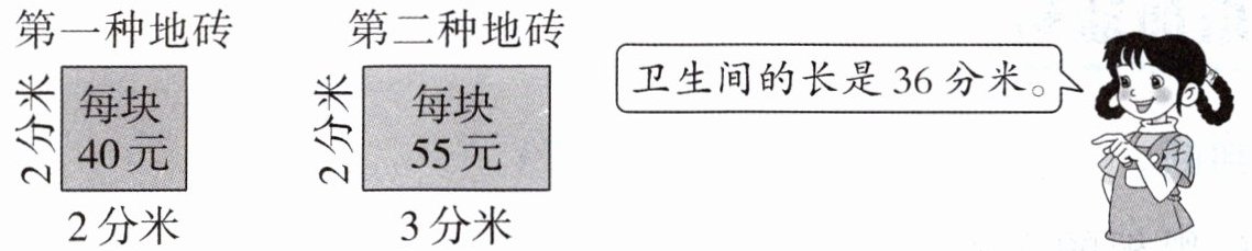 3. 乐乐家的一间卫生间要铺地砖,有两种地砖。