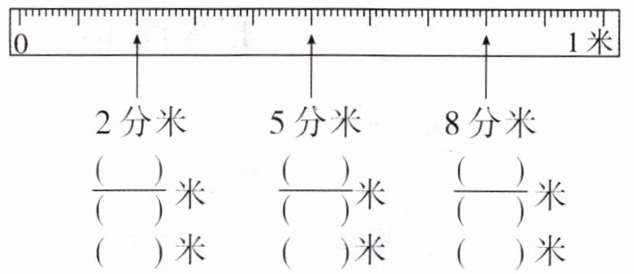 $\frac{2}{10}$,$0.2$;$\frac{5}{10}$,$0.5$;$\frac{8}{10}$,$0.8$。