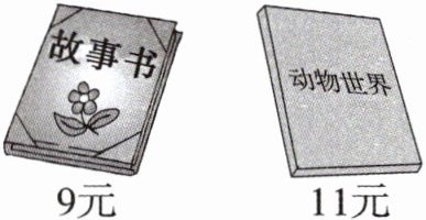 【解析】:先算出一本故事书和一本《动物世界》的总价钱:$9 + 11 = 20$(元),再算各买$23$本的总价钱:$20×23 = 460$(元)。