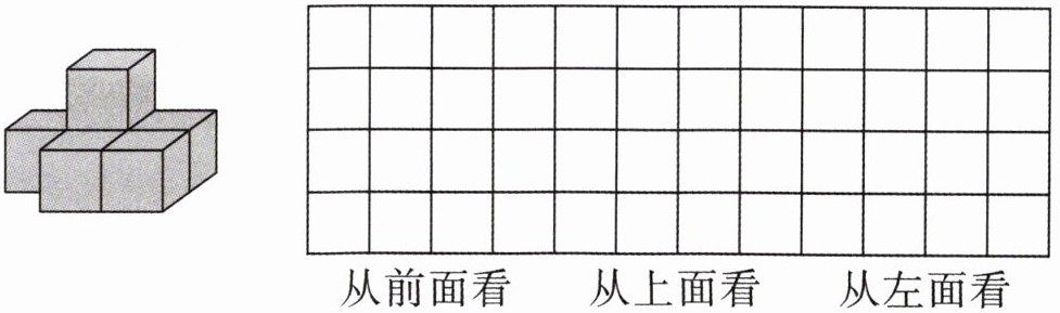 下面是由几个大小相同的小正方体摆成的物体,请你画出从前面、上面和左面看到的图形。