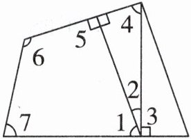 四边形内角和为$360^{\circ}$,在含有$∠6$、$∠7$的四边形中(有两个直角),$∠7=360^{\circ}-90^{\circ}-90^{\circ}-∠6$。