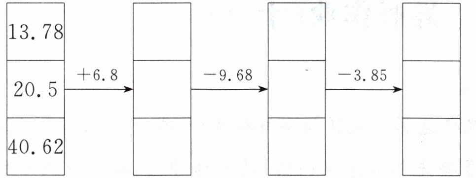 计算小数加法时,小数点对齐,从低位加起。$13.78+6.8 = 20.58$。