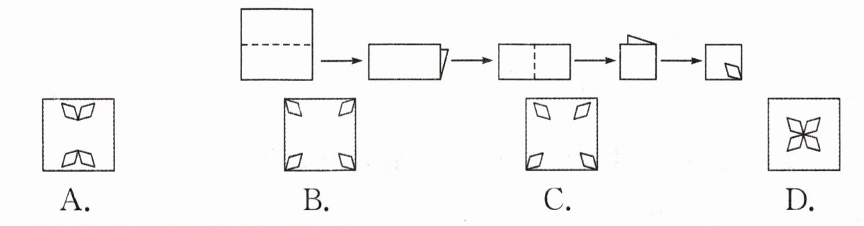 4. 将一张正方形纸对折两次,剪出如图所示的小洞,展开后得到的图形是(
