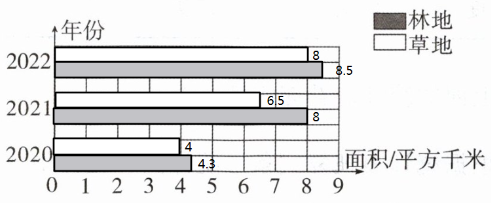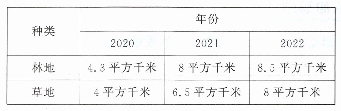 四、下面是某城市2020—2022年林地和草地的占地面积情况统计表。