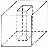 2. 有一个棱长是3dm的正方体零件,从它一个面的正中间向对面挖去一个底面边长是1dm的正方形的小长方体,这个零件的表面积(