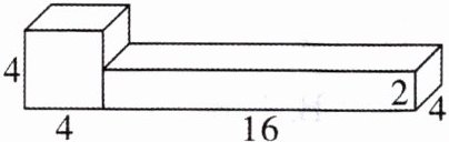 4. 两个正方体拼成一个长方体,长方体的宽和高都是$4cm$,长方体的体积是(