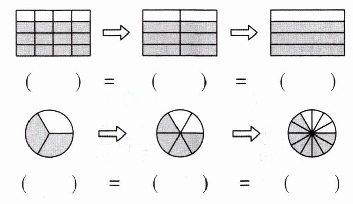 $\frac{12}{16}$,$\frac{6}{8}$,$\frac{3}{4}$;$\frac{1}{3}$,$\frac{2}{6}$,$\frac{4}{12}$