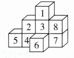 (3)如果移走小正方体( )和小正方体( ),并分别放到小正方体( )和小正方体( )的上面,从前面看到的就是一个大正方形。