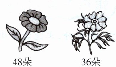 4. 用下面两种花搭配成同样的花束,正好用完,没有剩余,最多能扎多少束?