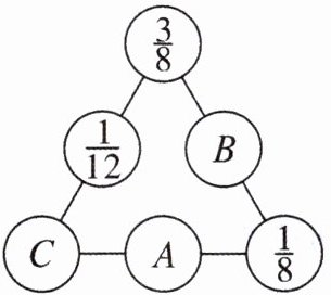 2. 图中三角形每条边上的三个数的和都相等。$$ A $$、$$ B $$、$$ C $$ 三个数中,可以确定的是(