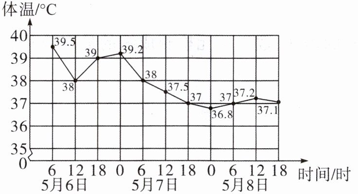 (2)观察折线统计图的最高点和最低点对应的体温值,最高体温是$39.5℃$;最低体温是$36.8℃$。