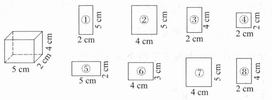 1. 从下面的8个面中找出6个面,使它们能围成左面的长方体。