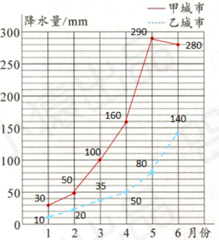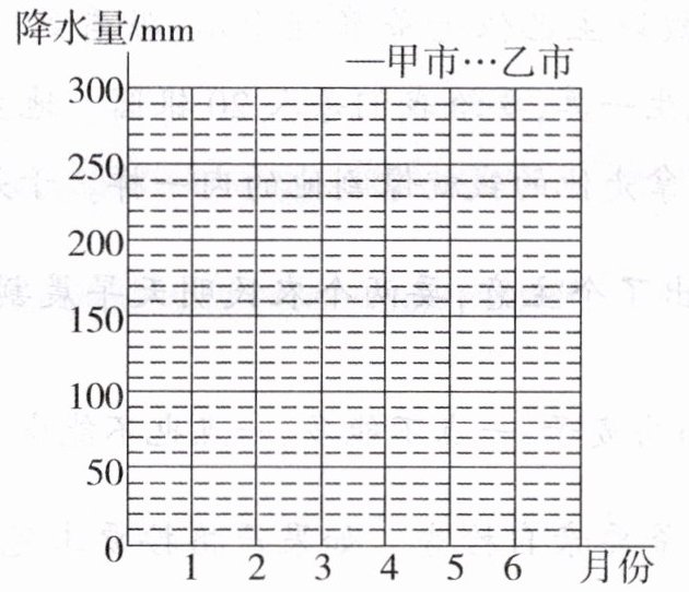 4. 下表是2024年上半年甲、乙两城市月降水量统计表。(单位:mm)