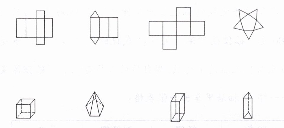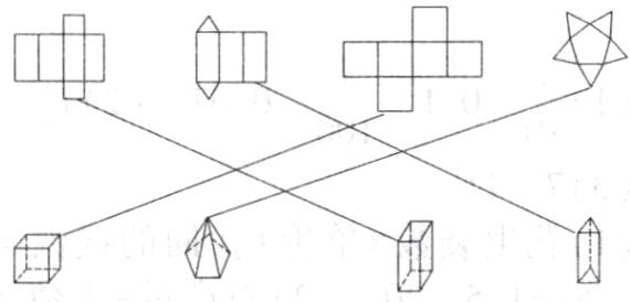 1. 下面展开图折叠后所围成的图形分别是哪一个立体图形,连一连。