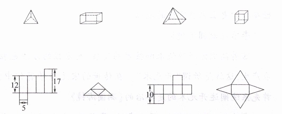 (1)将立体图形和它的展开图用线连起来。(单位:cm)
