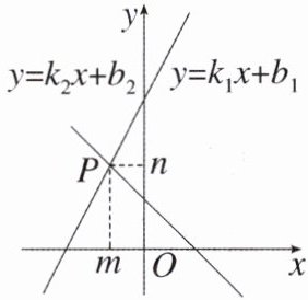 )6. 由图象看出:方程组$\begin{cases}y = k_1x + b_1,\\y = k_2x + b_2\end{cases}$的解为$\begin{cases}x = m,\\y = n.\end{cases}$ (