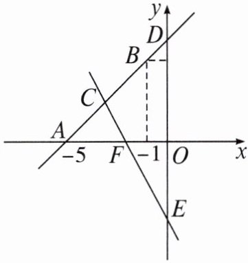 联立直线$AB$与直线$CE$的方程$\begin{cases}y = x + 5 \\ y = -2x - 4 \end{cases}$,