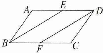 又$\because DE// BF$,$\therefore$四边形$BFDE$是平行四边形,$\therefore BE = DF$。