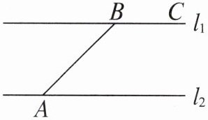 18. 如图,直线$l_{1}// l_{2}$,$l_{1}$和$AB$的夹角$\angle ABC = 135^{\circ}$,$AB = 5$.求$l_{1}$和$l_{2}$之间的距离.