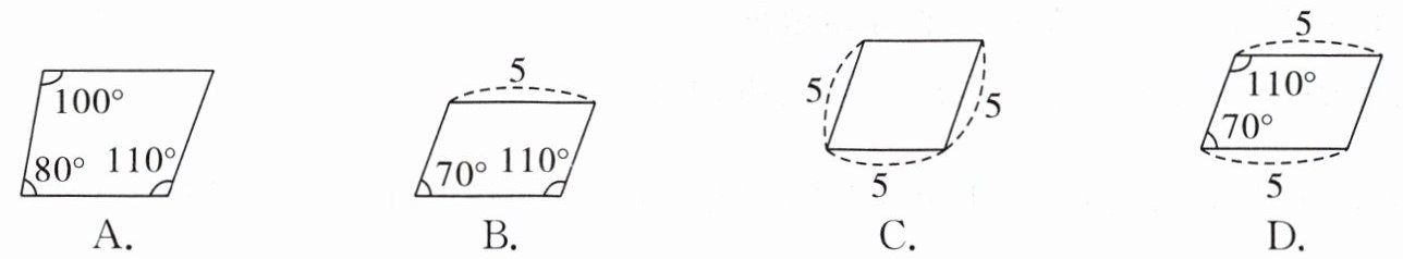 5. 依据所标数据,下列一定为平行四边形的是 (