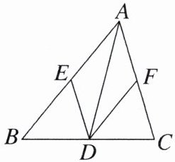 再根据菱形的判定定理(一组邻边相等的平行四边形是菱形),因为四边形$AEDF$是平行四边形且$AE = DE$,所以四边形$AEDF$是菱形。
