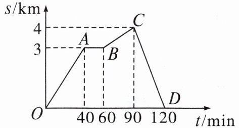 14. 某人沿直路行走.设此人离出发地的距离s(km)与行走时间t(min)的函数关系如图所示,则此人在这段时间内最快的行走速度是