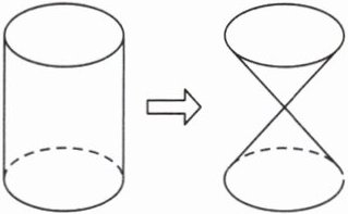 3. 如图所示,把一个体积是$24dm^{3}$的圆柱形木块削成由两个相对的圆锥组成的物体,每个圆锥的高是圆柱的一半,则每个圆锥的体积是