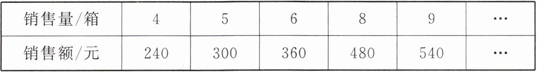 (1)观察表格,有(销售量)和(销售额)两种量,(销售量)增加,(销售额)也随着增加。