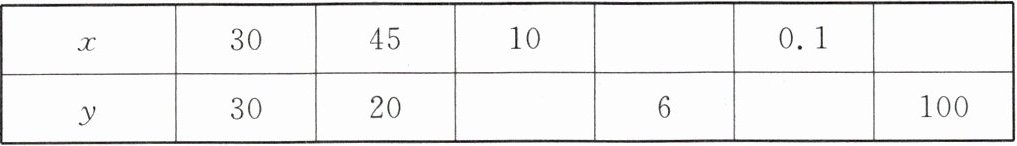 三、已知下表中$x与y$成反比例,请把表格填写完整。