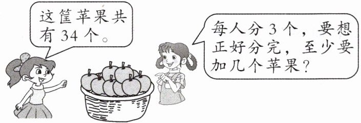 【解析】:本题可先计算$34$除以$3$的余数,再用$3$减去余数,即可得到至少要加的苹果数。