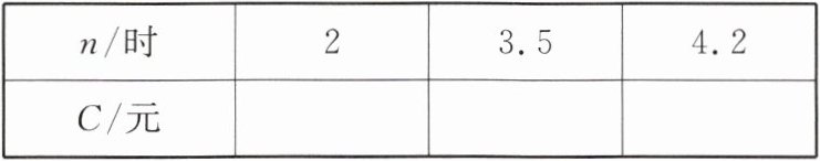 四、服装公司用公式$C = 10 + 12n$计算成本费。$C$表示成本费,$n$表示做一件服装所需的时间。根据公式填写下表。