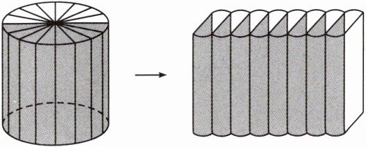 1. 如图,把一个底面直径和高都是 6 cm 的圆柱切拼成一个近似的长方体,这个长方体的长是(