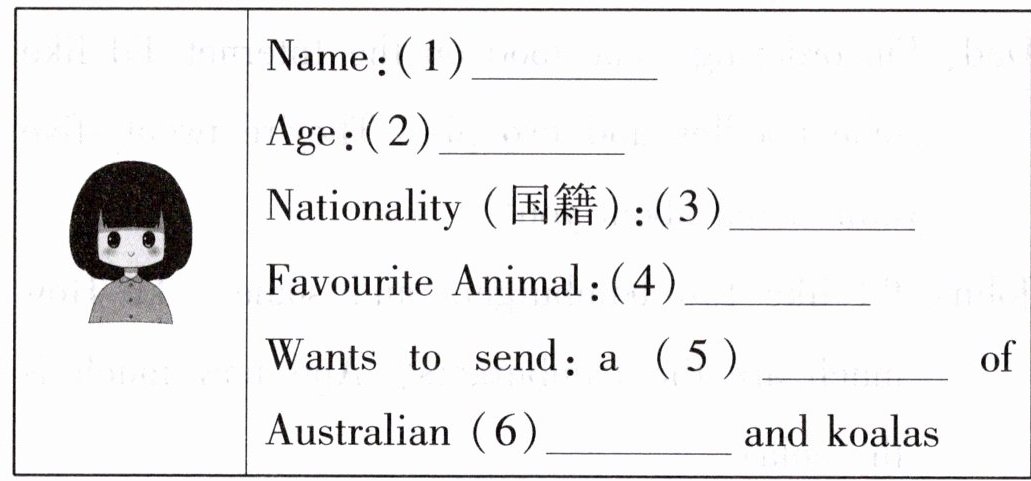 Wants to send: a (5)______ of Australian (6)______ and koalas