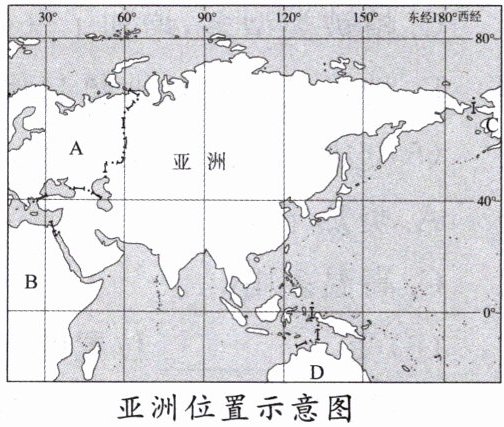 15. 亚洲是我们的“家”,你对自己的“家”了解多少?读“亚洲位置示意图”,回答下列问题。