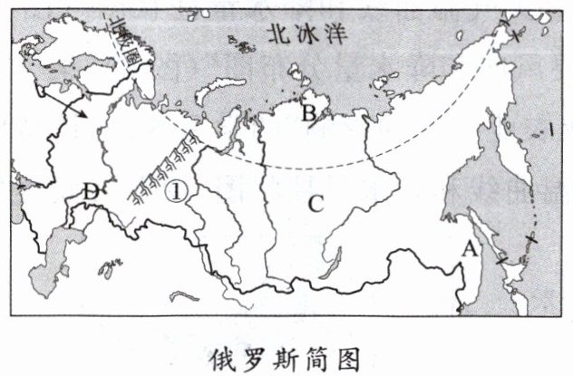 (1)俄罗斯横跨亚、欧两大洲,位于其境内的两大洲的分界线①是____