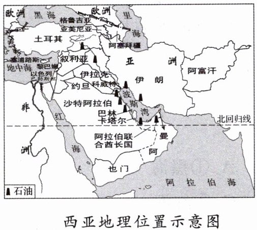 西亚被称为“三洲五海之地”。右图为“西亚地理位置示意图”,读图,完成1~3题。