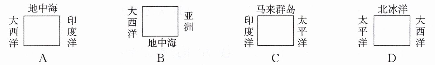 4.下列示意图中,能够正确表示欧洲西部海陆位置的是 (